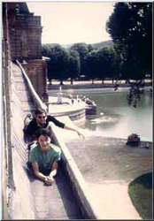 - Thérèse Brenet sur le toit du chateau de Fontainebleu avec Michel Decoust pendant le concours pour le Prix de Rome, 1964″